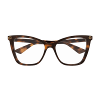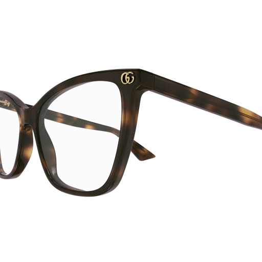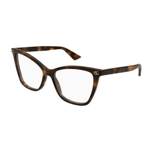 Extreme cat-eye shape. Gucci lettering logo on temple. Commercial yet elegant feminine colour palette.