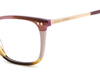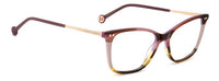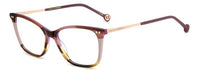 Carolina Herrera's Essential eyewear collection celebrates the brand's feminine and joyful spirit. Crafted from nearly-weightless acetate, these optical glasses spotlight luminous metal trims and logo-engraved stainless steel temples that frame the face beautifully. Notice the tonal inserts glued on the side sections of the frame, available in solid colours and textured styles. The coordinating acetate tips tie the look together, while the iconic riveted hinge and the unmissable red CH monogram on the temple tips ensure staying power.