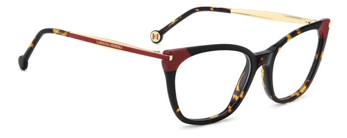 Carolina Herrera's Essential eyewear collection finds confidence in contrasts. A seamless fusion of acetate and metal, these optical glasses bridge timeless glamour with modern silhouettes. The elegant frame is given depth and dimension with unexpected inserts – available in tonal and contrasting shades – paired with faceted metal temples in an elliptical shape, creating intrigue through alternating textures. Complete with the laser-etched logo lettering and iconic CH monogram on the temple tips, they're a luxurious everyday choice.
