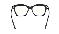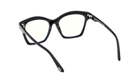 Bold and sophisticated, this Tom Ford cat-eye frame brings a confident twist to a timeless silhouette. Crafted in glossy black acetate with a subtle blue interior accent, it offers both elegance and a touch of modern edge.