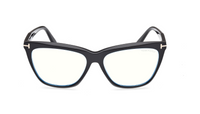 Chic and commanding, this Tom Ford cat-eye frame is the perfect mix of boldness and elegance. Crafted in glossy black acetate with a refined blue interior accent, it brings a modern edge to a timeless feminine silhouette.