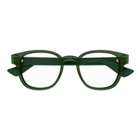 Cool and easy-to-wear concept characterized by the iconic Gucci Web detail. Acetate rounded shape. The iconic Web detail on the temples is a direct link to the Gucci world. Gucci Lettering Logo on temples. The style is available in classic colours with various interpretation of the Web including green and blue tones.
