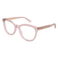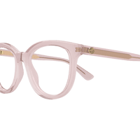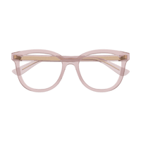 Carry over acetate styles with transparent colours and dedicated decorated wire core. soft cat eye Rounded shape. Interlocking logo. Transparent yet solid commercial colours.