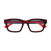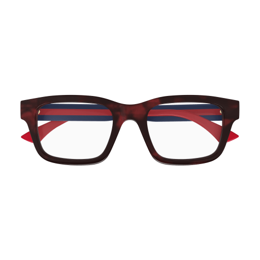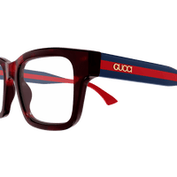 Carry over concept in a lighter version featuring extremely cool shapes and colours. Squared shape. Gucci lettering logo on temples, endpieces and temples embellished by the iconic rivets. Commercial yet cool colour palette.