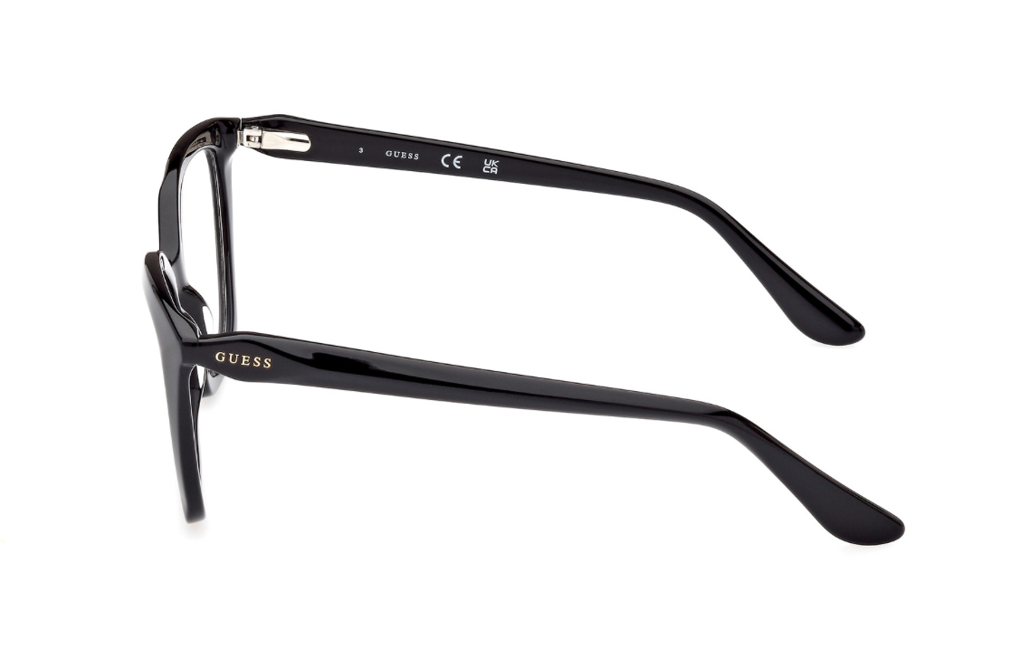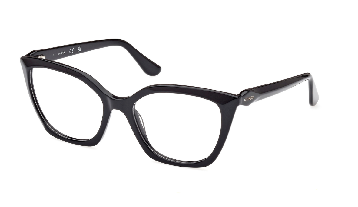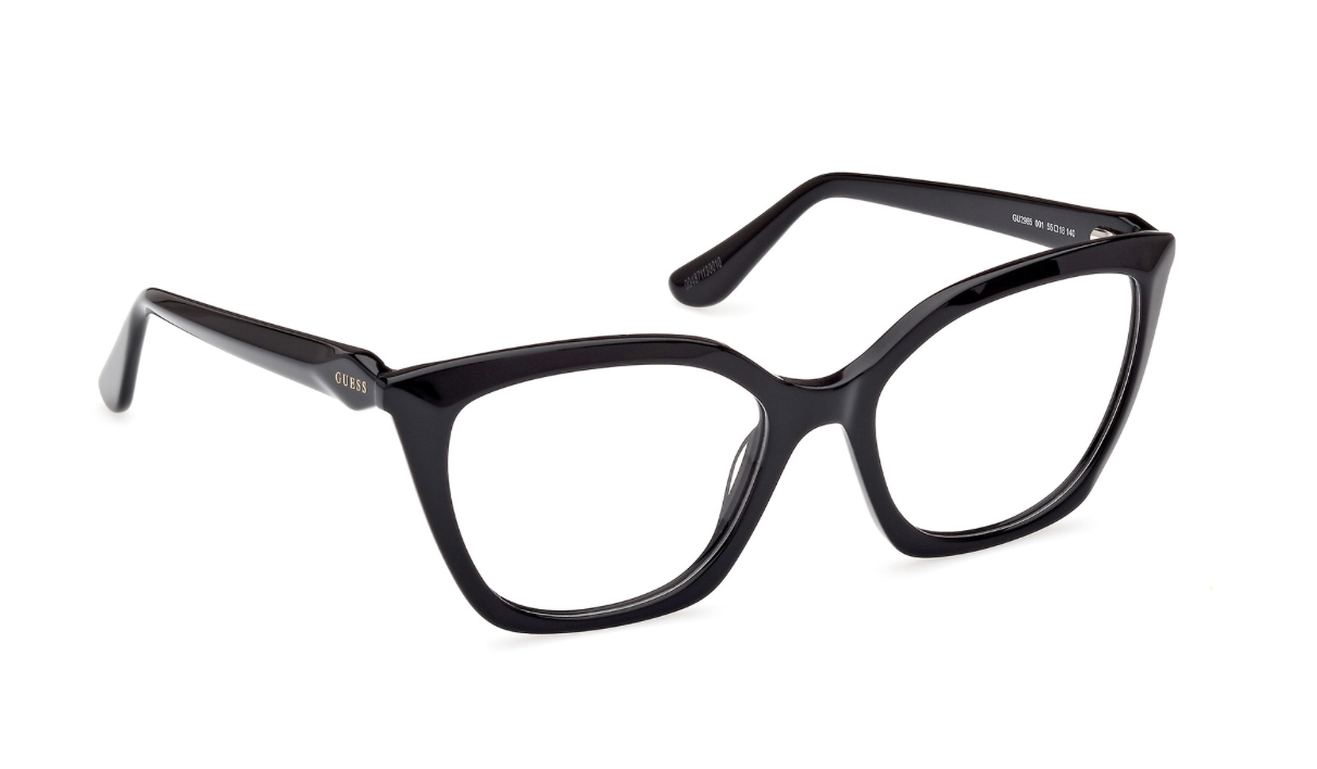Sleek and timeless, these glossy black GUESS frames offer a bold cat-eye silhouette with subtle logo detailing—perfect for effortless everyday elegance.