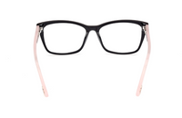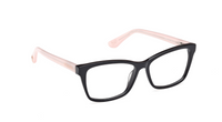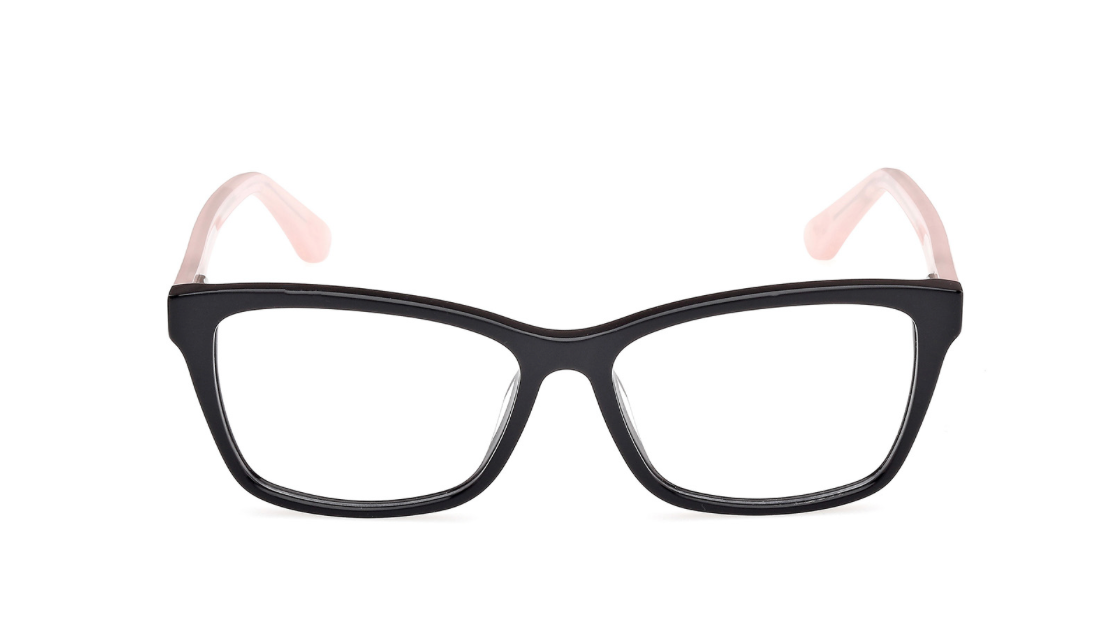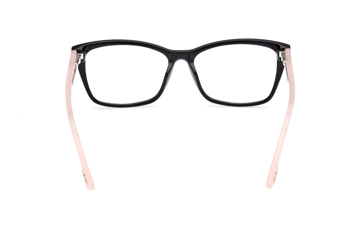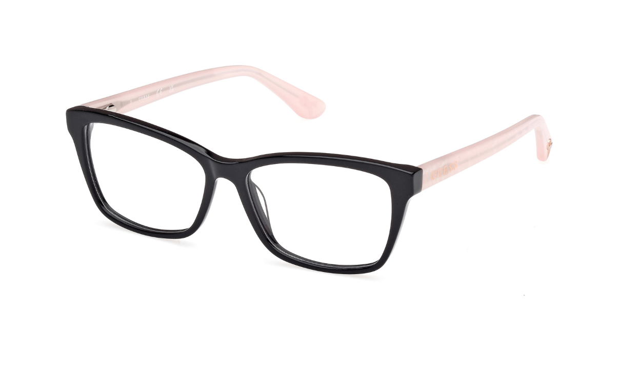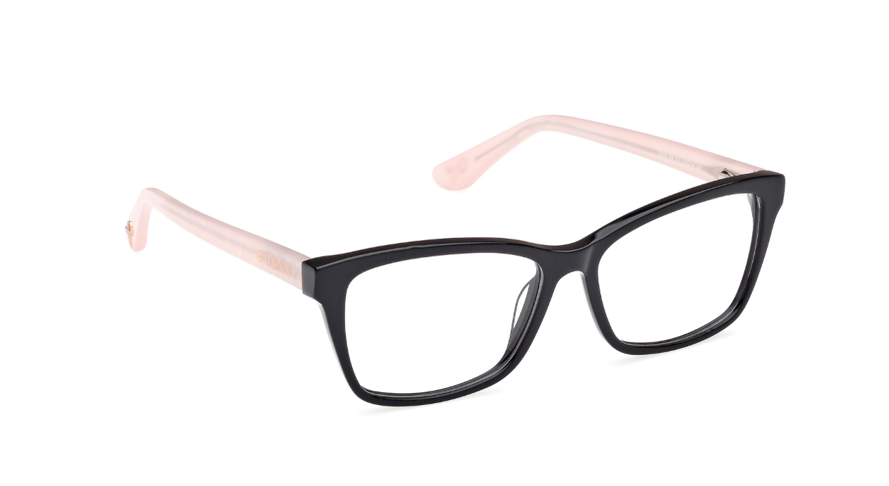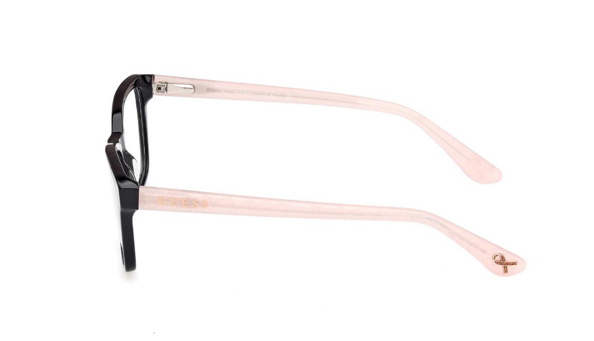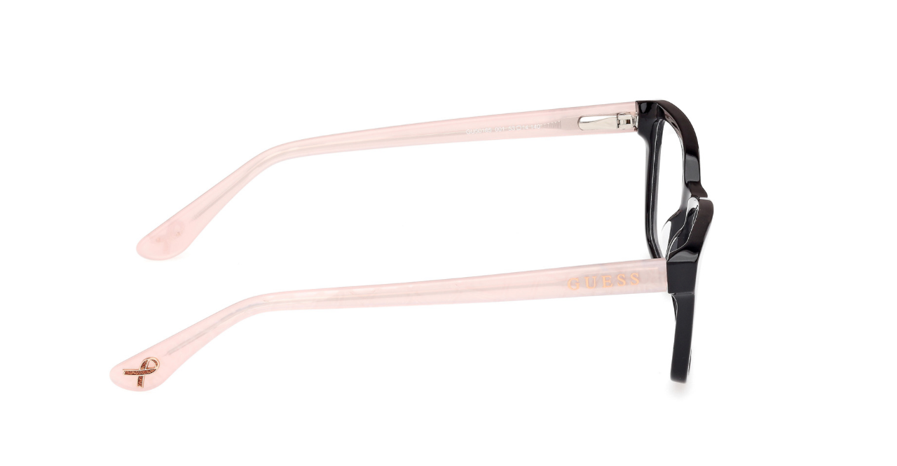 These chic GUESS specs feature a classic black front paired with soft blush pink arms—feminine, versatile, and effortlessly stylish.