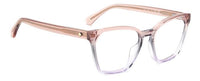 These KATE SPADE eyeglasses are made of sustainable eco-acetate for a positive vision of the future that's kind to the planet. The hinges are flexible, for optimal comfort. The silhouette? Versatile, and anything but boring. The lightweight frames come in the season’s hues, including a color gradient version. The SO HAPPY TO SEE YOU inscription appears on the inside of the temples, and the small metal logo brightens the look.