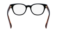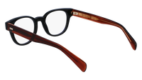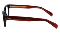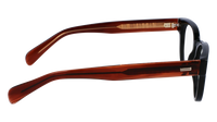 A sophisticated blend of tradition and boldness, this Paul Smith frame is crafted from black acetate fronts paired with amber tortoiseshell-inspired temples. The rectangular silhouette offers a confident, timeless look, while the sculpted acetate adds depth and dimension.