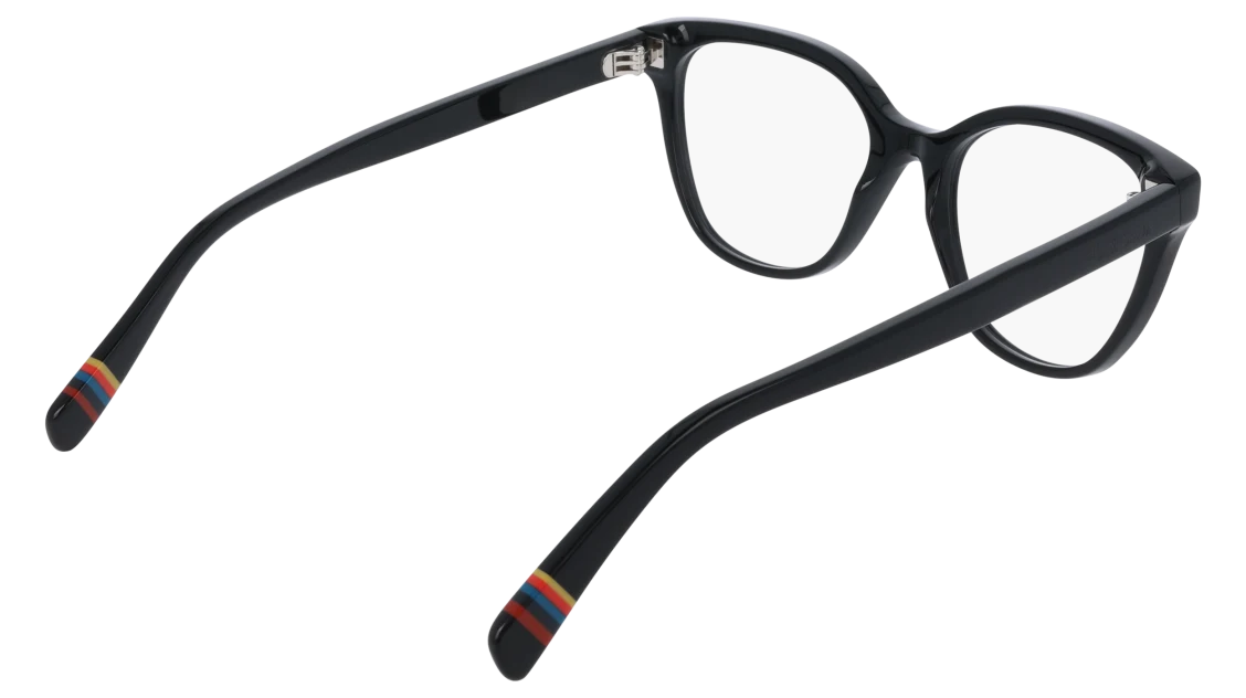 A bold yet elegant design, these Paul Smith cat-eye glasses bring a modern twist to a timeless silhouette. Crafted in sleek black acetate, the frame is subtly lined with a hint of purple for added depth and style. The tapered temples feature Paul Smith’s signature multi-stripe detailing at the tips, a playful nod to the brand’s iconic design heritage.