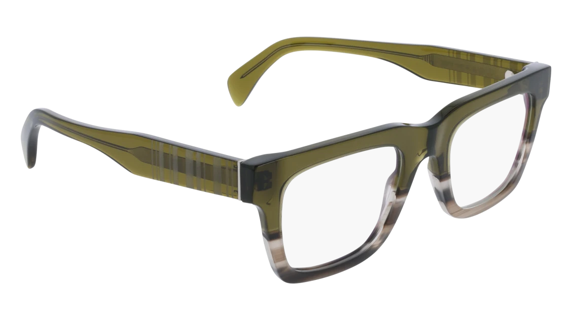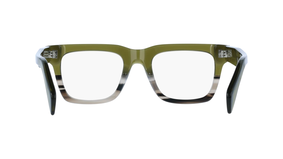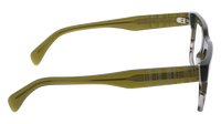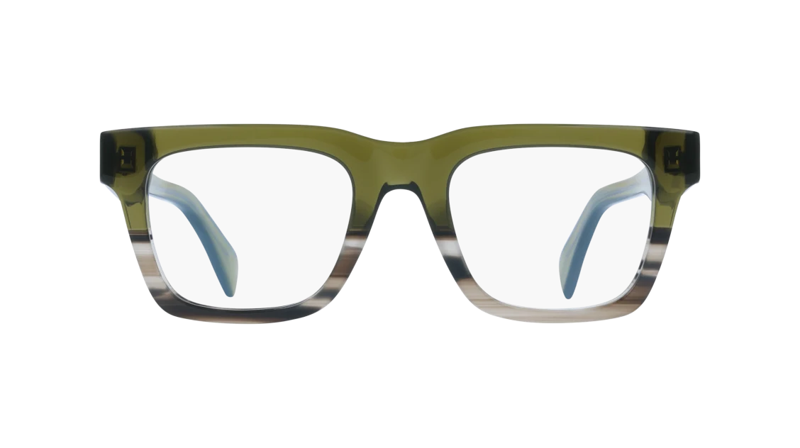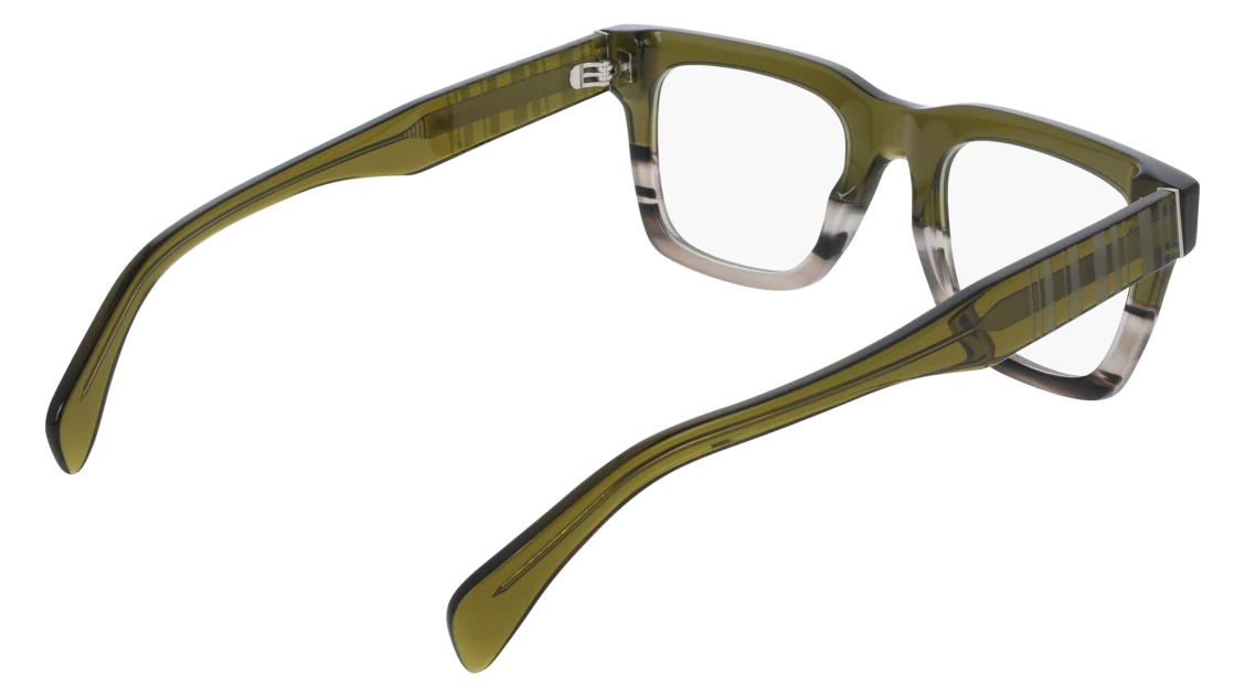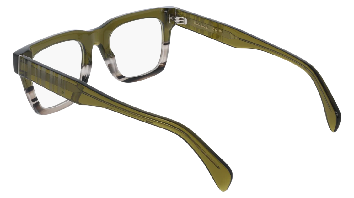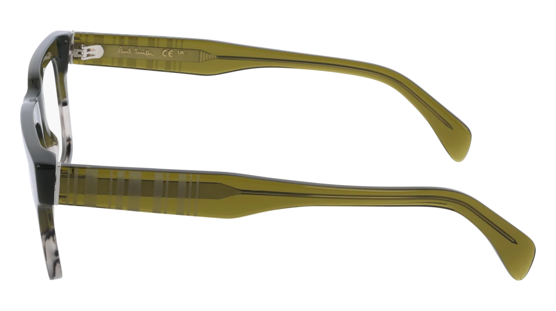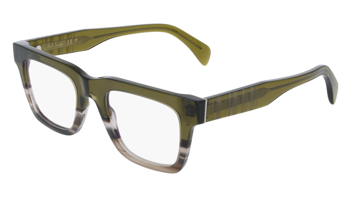 A bold and modern statement piece, these Paul Smith glasses feature a striking square silhouette crafted in premium acetate. The frame blends earthy olive green tones with a subtle gradient effect, fading seamlessly into lighter hues for a distinctive finish. Thick temples carry Paul Smith’s signature striped detailing, adding a playful twist to their strong geometric design.