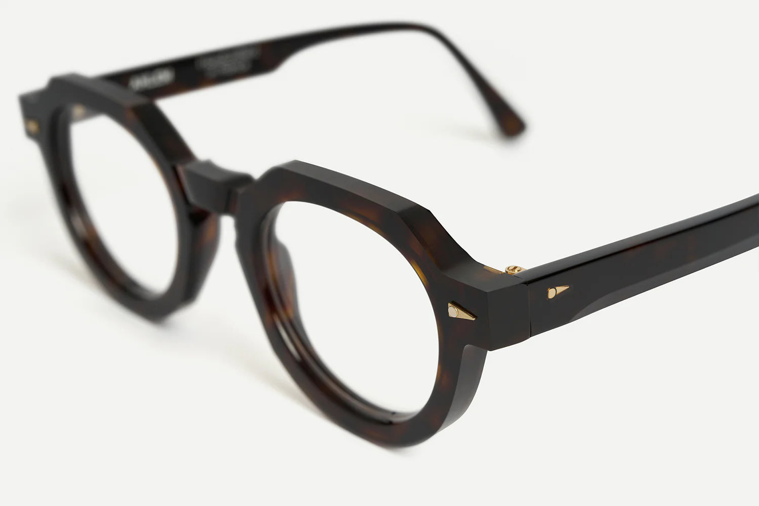 - Temples are 10mm wide with a single raw-cut bevel for a striking contrast between matte and polish