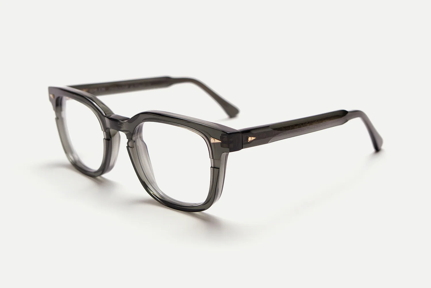 Slender from the front and the side, Rue Servan is a unisex frame with thoughtful design details. A subtle stripe of raw acetate runs along the lenses’ horizon line, while the sculpted keyhole bridge, beveled temples, and triangle accents add layers of distinction. Handcrafted in France.