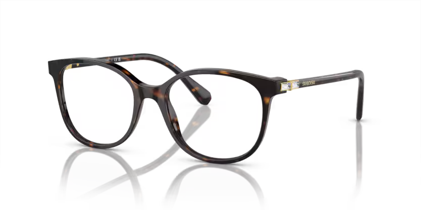 Elegant and timeless with a hint of sparkle – this Swarovski Havana optical frame blends classic tortoiseshell styling with the brand’s signature glamour. The warm Havana acetate, with its mix of amber and deep brown tones, offers a sophisticated look, while Swarovski crystal accents on the temples add refined brilliance that elevates the design.