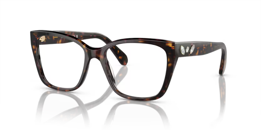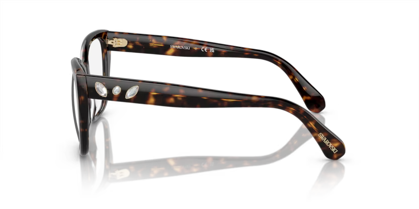Classic tortoiseshell meets Swarovski sparkle in this elegant Havana optical frame. The rich blend of amber and deep brown tones creates a timeless, versatile look, while Swarovski crystal accents on the temples add a jewellery-inspired touch of brilliance.