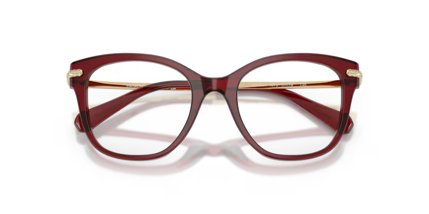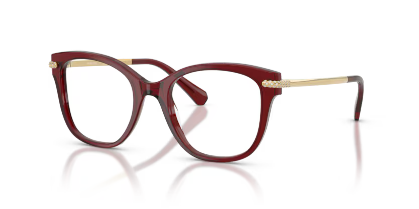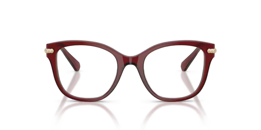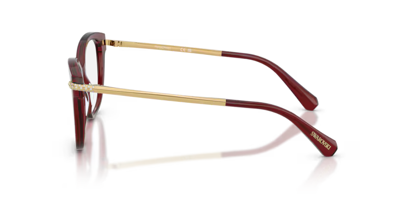 Rich, glamorous, and effortlessly elegant – this Swarovski Burgundy & Gold optical frame is a luxurious statement piece for women who love refined eyewear with a touch of sparkle. The deep burgundy acetate front offers a warm, sophisticated tone, while the gold-toned temples are adorned with Swarovski crystal embellishments, adding jewellery-inspired brilliance.