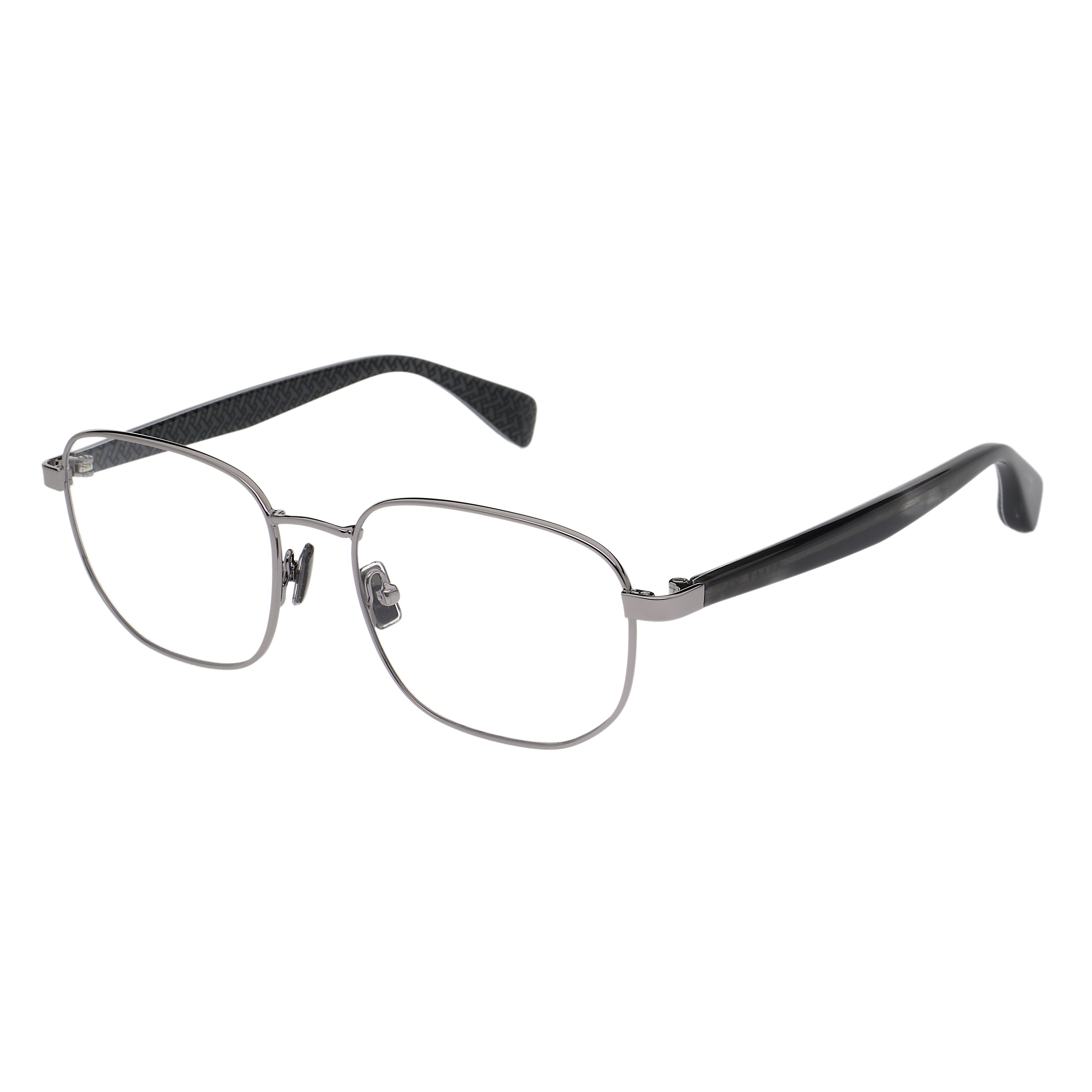 These Ted Baker eyeglass frames feature a lightweight, full-metal design in a soft gunmetal finish with a modern rounded-square shape. The black acetate temples are paired with textured inner arms for added comfort and style, while adjustable nose pads ensure a tailored fit for all-day wear.