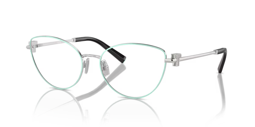 Elegant and instantly recognisable, this Tiffany & Co. frame in Tiffany Blue on Silver captures the brand’s signature sophistication. The sleek silver metal frame provides a refined, lightweight base, while the iconic Tiffany Blue accents at the temples add a touch of timeless luxury and femininity.