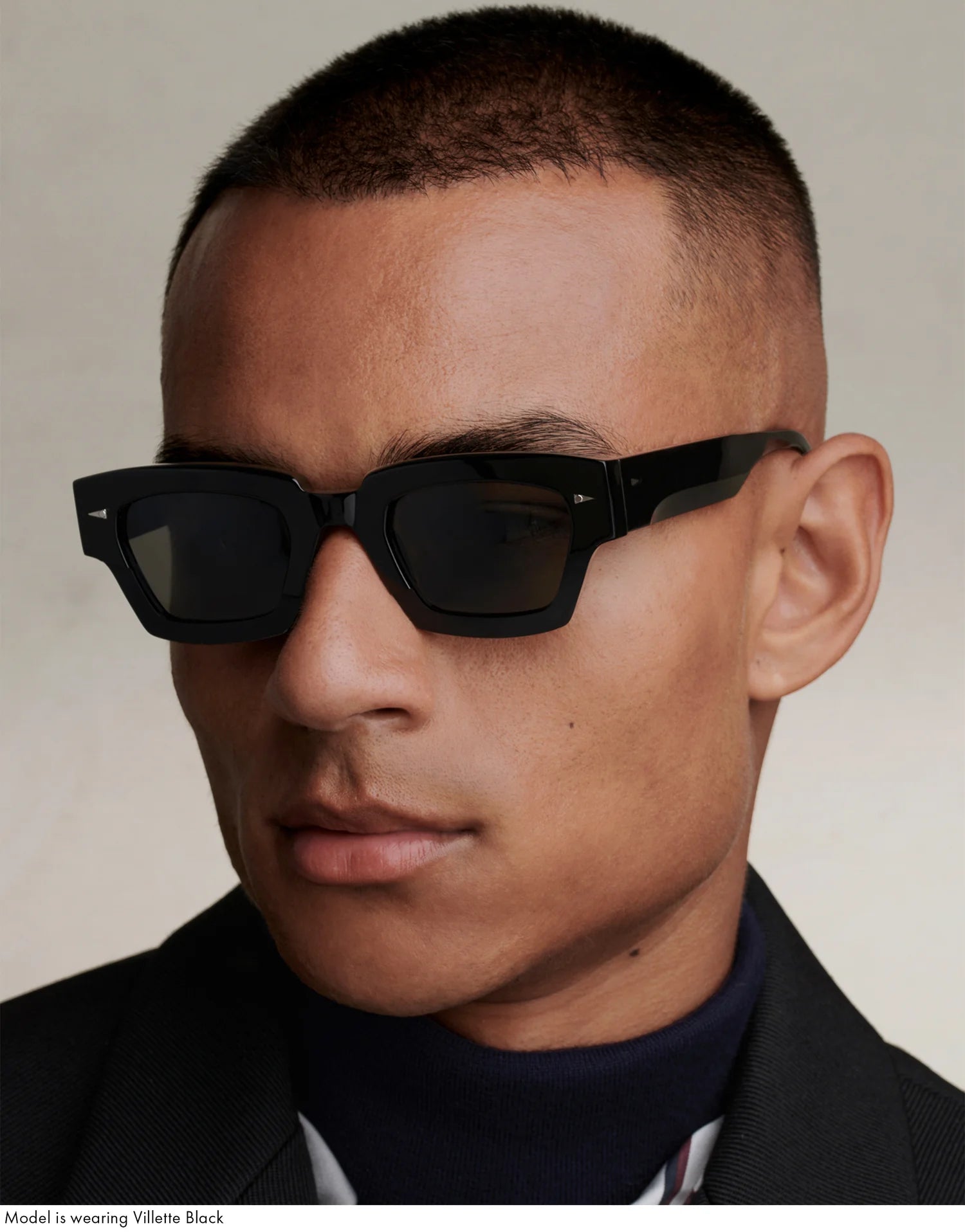 - Temples are 18mm wide with a single raw-cut bevel for a striking contrast between matte and polish